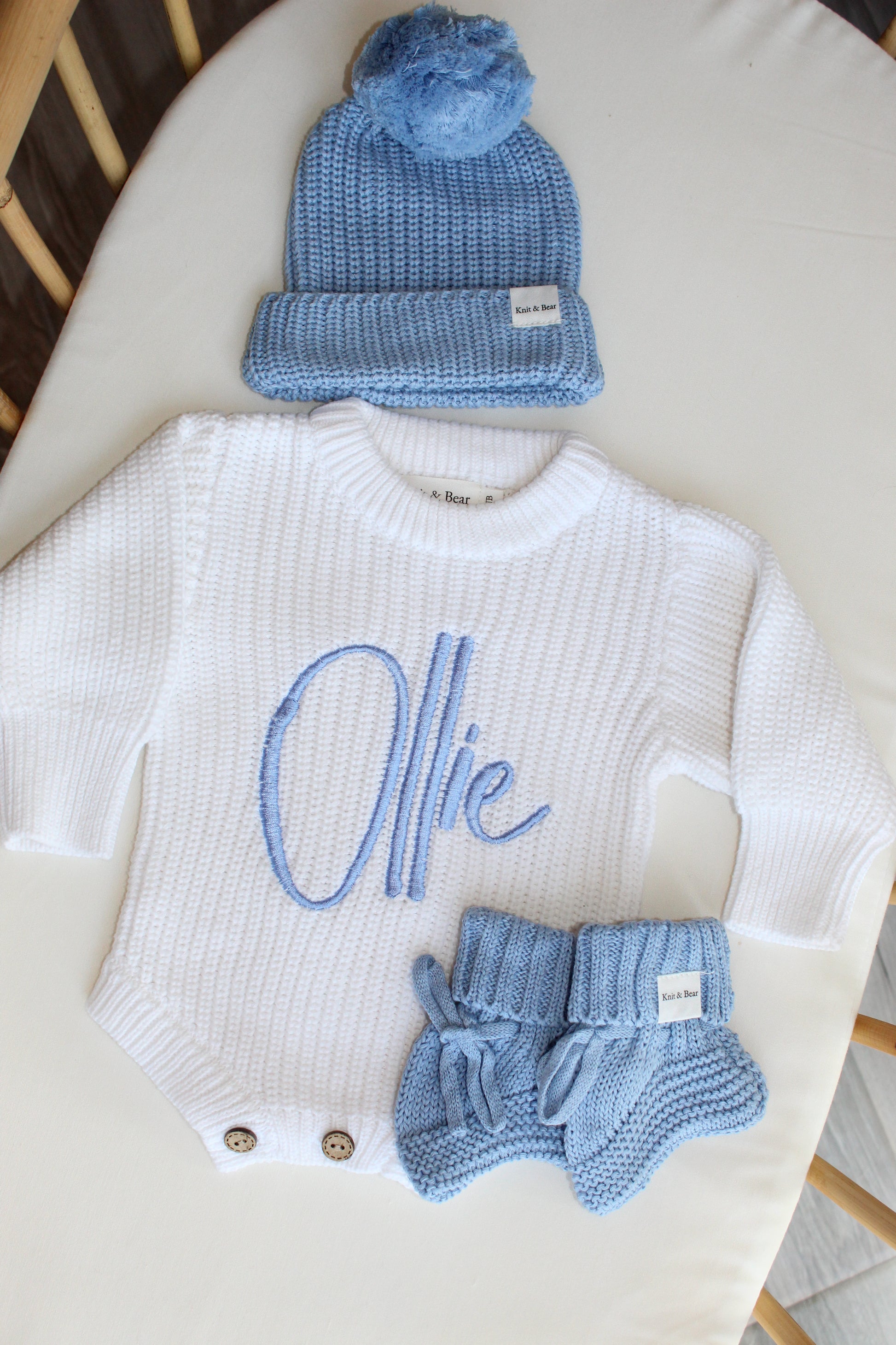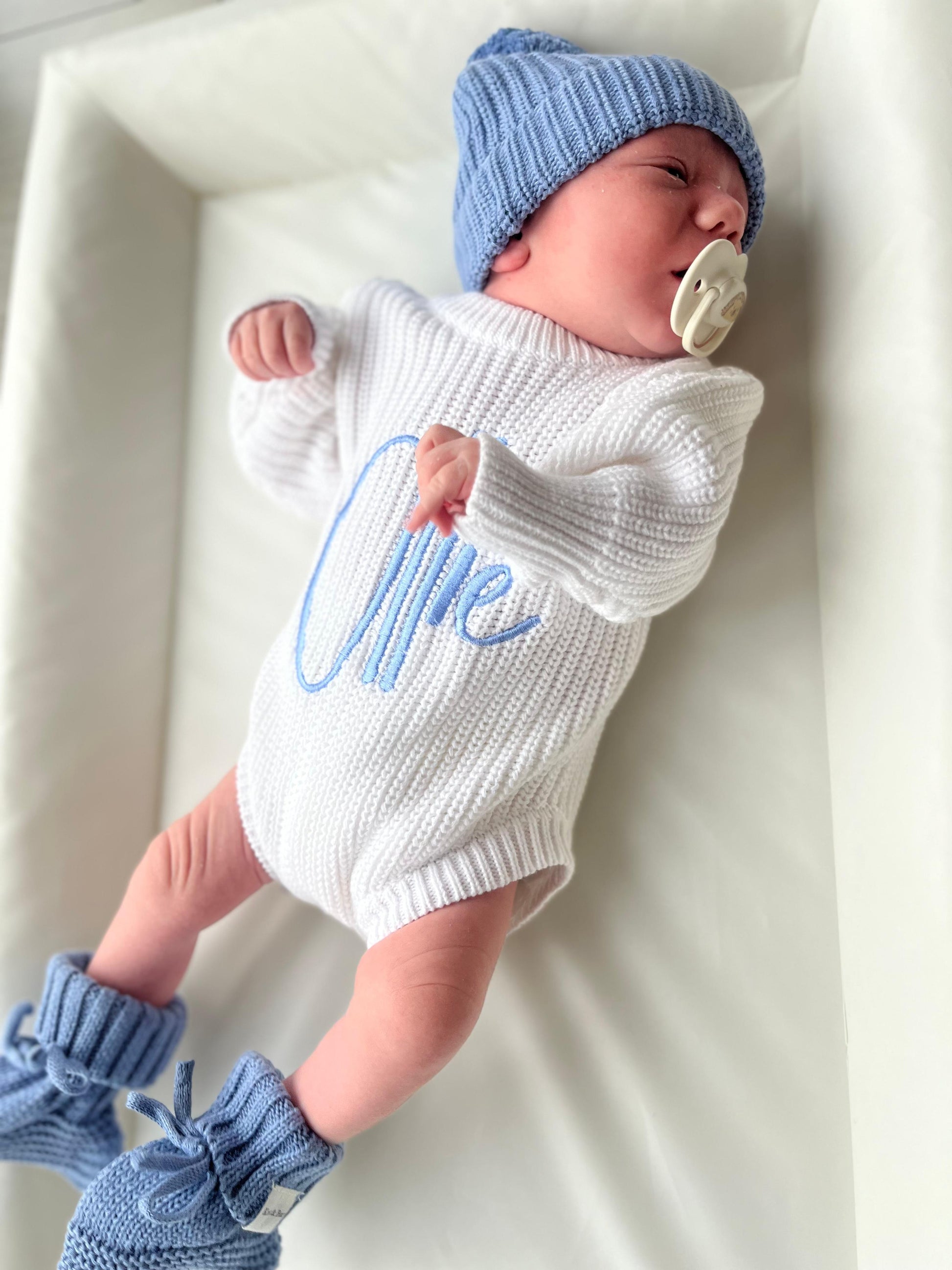 Check out our Instagram Highlights for ideas for selecting your desired font style and thread colour @knitandbear
