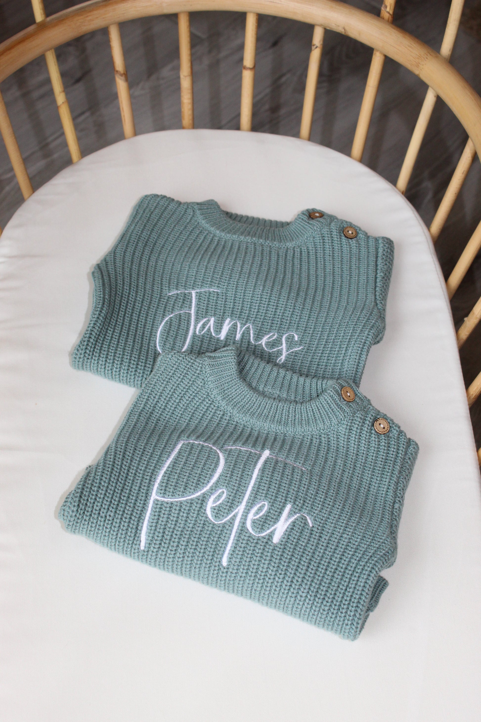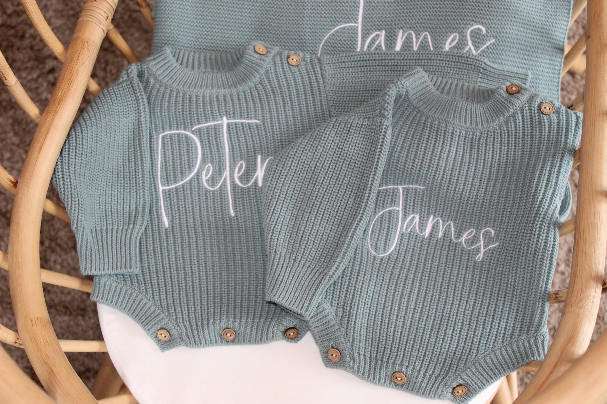 Check out our Instagram Highlights for ideas for selecting your desired font style and thread colour @knitandbear