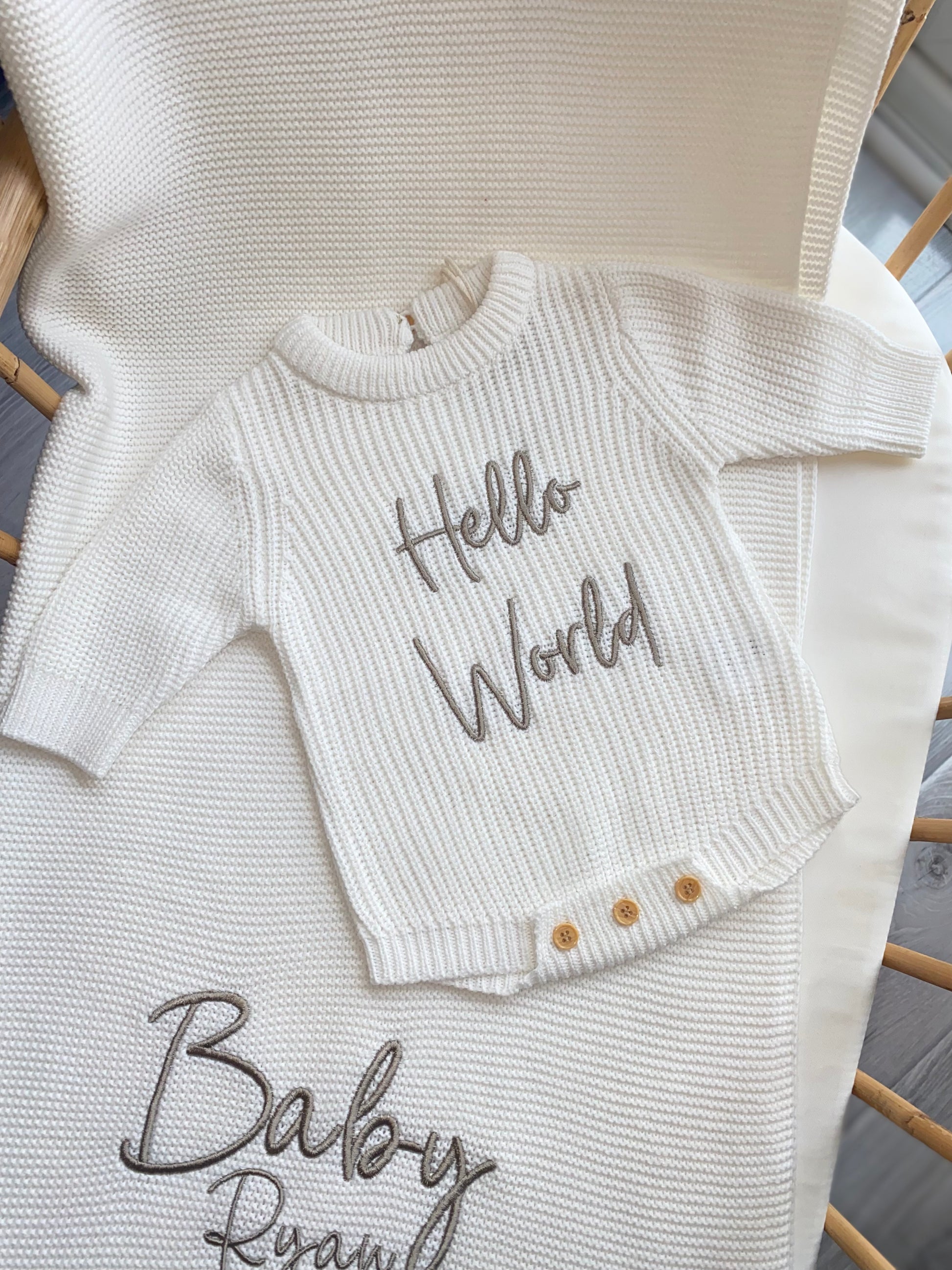 Add a heartfelt touch with custom embroidery on the romper! Choose from baby’s name, “Hello World,” “I’m Here,” “She’s Here,” or any meaningful phrase. Want to add a little love? Just leave <3 for an embroidered heart.